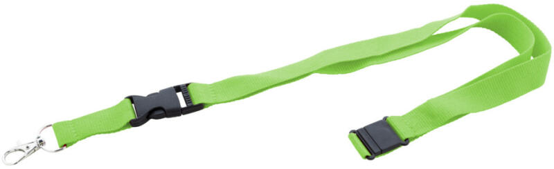 RPET poliészter nyakpánt levehető fém karabinerrel és biztonsági csattal.