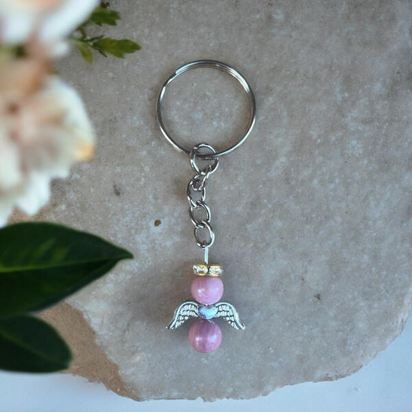 A gyöngyök átmérője: körülbelül 8mm A kulcstartó és lánc része nemesacélból készült.