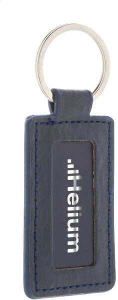Téglalap alakú, újrahasznosított PU bőr kulcstartó fém karikával és gumírozott rozsdamentes acél logóval. Speciális bevonattal a tükörlézeres gravírozáshoz.