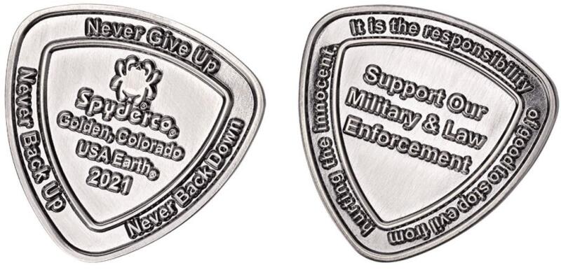 A Spyderco SPYDERCOIN 2021 egy különleges emlékérme, amely a Spyderco támogatását jelképezi az Egyesült Államok rendőrségi és katonai személyzete iránt. A termék tükrözi a vállalat értékeit, melyek hangsúlyozzák a jó felelősségét a gonosz megállítására, hogy megvédjék az ártatlanokat, és ösztönöznek arra, hogy soha ne adjuk fel, ne hátráljunk meg. Az érme kettős célú: nemcsak egyedi dizájnja miatt figyelemre méltó, hanem mert a rendőrség és a hadsereg támogatójaként is szolgál.