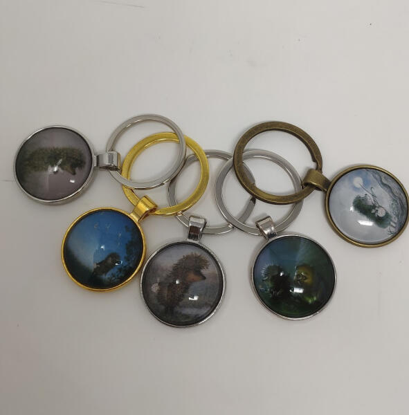 Különleges sünis kulcstartó üveglencsés medállal, fém keretben. Egyedi, mesés grafikák több változatban, amelyek feldobják a kulcscsomót vagy táskát. Tökéletes ajándék természetkedvelőknek és állatbarátoknak!