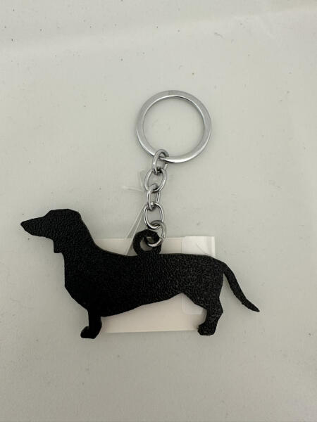 Egyedi 3D nyomtatott tacskó mintás kulcstartó.